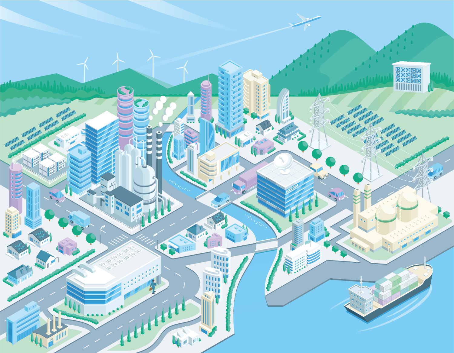 最近のお仕事 日本ガイシ株式会社様 統合報告書NGKレポート2025 街イラスト shintanikaoru 2025年10月22日 NGKグループ様の製品・開発品が活躍されている街を描かせていただきました。該当する建物・モノを少し大きく描くことでメリハリをつけ分かりやすいイラストを心掛けました。また、素敵な紙面に馴染めるようトーンを合わせ配色しました。ありがとうございました。 touch more