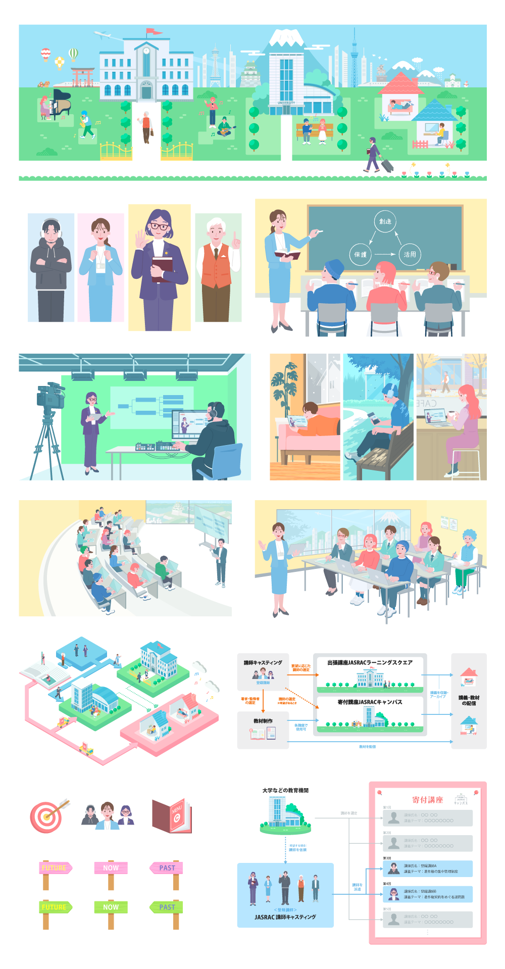 最近のお仕事 一般社団法人 日本音楽著作権協会(JASRAC)様 JASRAC著作権アカデミー WEBサイトイラスト shintanikaoru 2024年11月30日 WEBサイト「JASRAC著作権アカデミー」のイラスト担当させていただきました。教育関係者の方や、一般の方々が著作権を気軽に学ぶことができる様々な情報を発信されています。①出張講座JASRACラーニングスクエア②講師キャスティング③寄附講座JASRACキャンパス④教材制作⑤講義・教材の配信上記5つの取り組みを行なっておられます。よろしければ、ご覧ください! タッチは少し固さもありながら、明るく親しみやすいイメージを心掛けました。 touch more